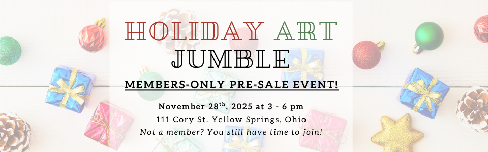 During the Holiday Art Jumble, the gallery will be open for extended hours on Saturday and Sunday, November 29th – December 28th, 2025.